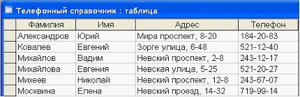 | (Фамилия = “Мих*”)И (Адрес = “Невский проспект”)И (Телефон = ###-##-#7) | |||