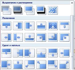 | назначать эффекты перехода от слайда к слайду | |||