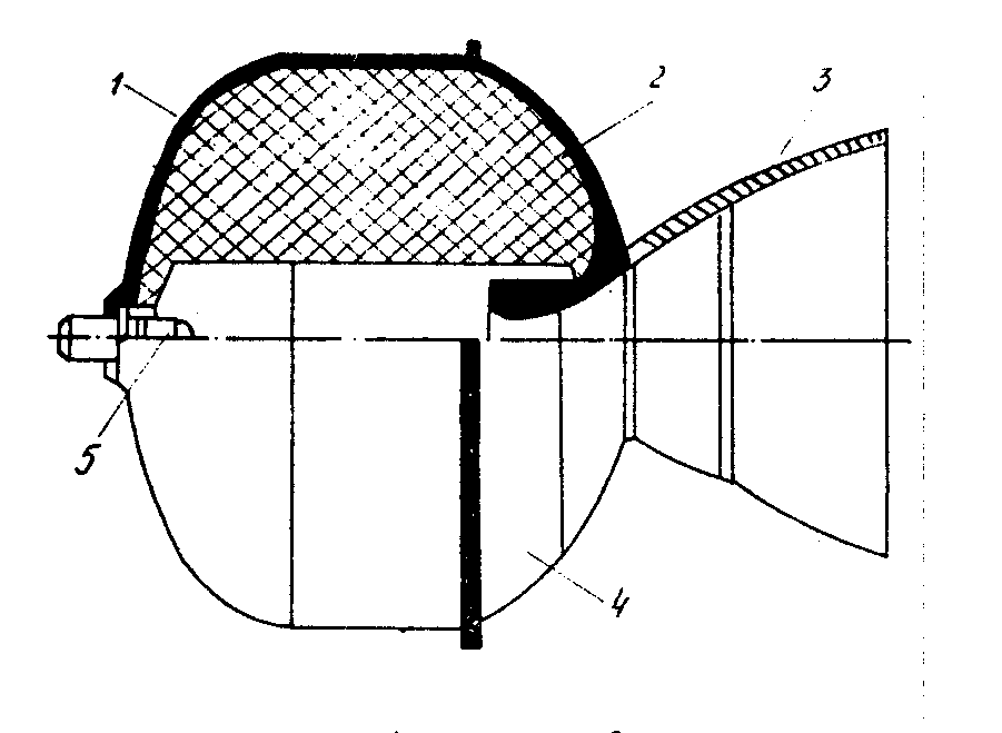 1 − глухой торец камеры сгорания; 2 − заряд ТТ; 3 − фильтр; 4 − сопло
