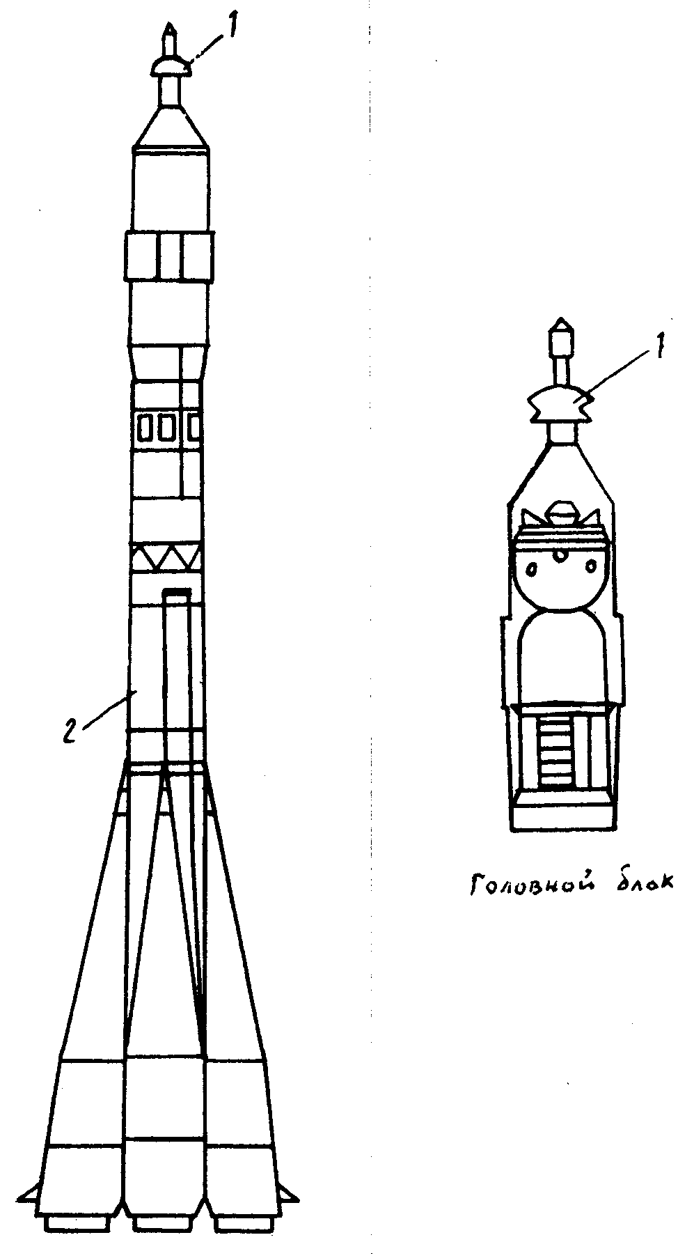 Основой этой системы является РДТТ специальной конструкции, использующей твердые ракетные топлива баллиститного и смесевого типа. Например, в трехступенчатой ракете-носителе «Союз» третья ступень представляет собой блок длиной 8 м и диаметром 2,6 м, к которой через переходник пристыкован космический корабль, закрытый сверху обтекателем диаметром 3,0 м. На вершине обтекателя находится двигательная установка аварийного спасения корабля, имеющая форму большого гриба (рисунок 51) [19].