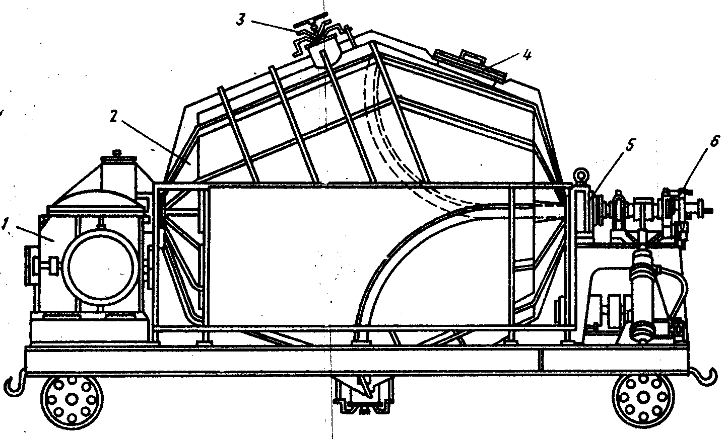 1 − привод ротора; 2 − ротор; 3 − загрузочный люк; 4 − лаз с вышибной крышкой; 5 − загрузочное сопло; 6 − коллектор