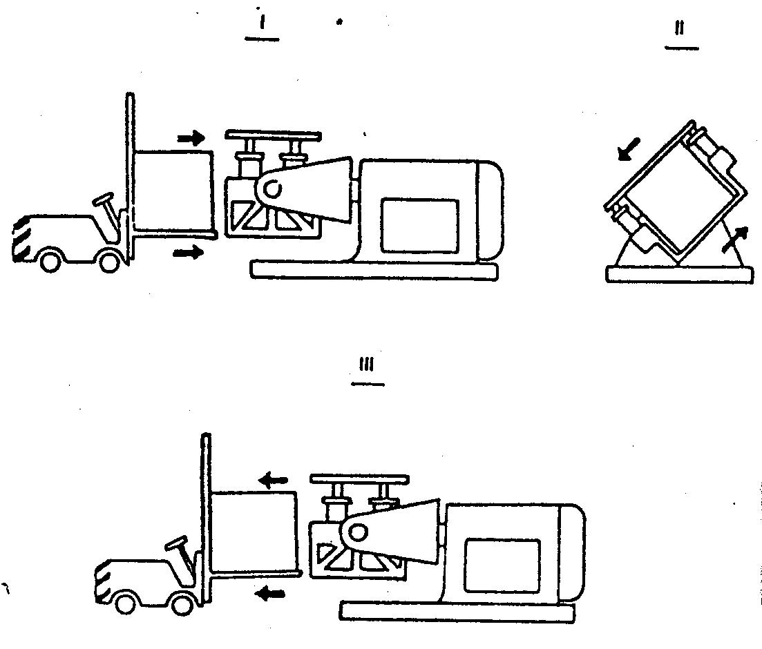 В начале работы ложемент смесителя устанавливается в исходное горизонтальное положение и электропогрузчик вкладывает в него контейнер с продуктом (рисунок 58, положение I).