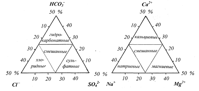 Рис. 20. Треугольная форма диаграмм (анионы и катионы)