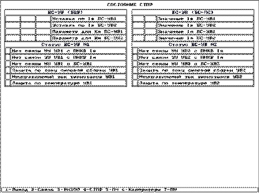 Из меню окна «Связь ПСН» при нажатии соответствующих клавиш можно выйти в окна «Состояние РН3000 (РН3000)», «Состояние СТПР (СТПР)», «Состояние ПЧ ВО, ТК, ЗУ (ПЧ)», «Состояние калориферов (Калориферы)», «Состояние приточной установки (ПУ)».
