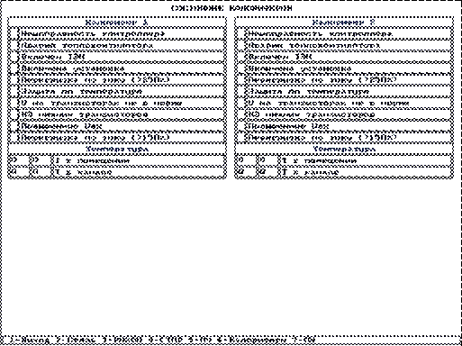на красном фоне, если при включенном переключателе КОМПРЕССОРЫ, или нажатой кнопке ПРИНУДИТ. ВКЛ. КОМПРЕССОРОВ в течение пяти секунд нет, либо пропал сигнал «Включение компрессоров». Индикация отключенного состояния МК. Для повторного включения МК необходимо выключить-включить переключатель КОМПРЕССОРЫ.