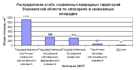 История развития особо охраняемых природных территорий в Воронежской области насчитывает уже не одно десятилетие. Наиболее массовой категорией ООПТ в Воронежской области являются памятники природы. Более половины из них являются биологическими, что объективно отражает стремление сохранить в пределах ареала опорные территории с характерным видовым набором животных и растений.