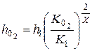 где h1, h2, К1, К2, соответственно, глубины и соответствующие им расходные характеристики, вычисленные в таблице П.7.5.
