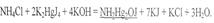 При взаимодействии образовавшегося хлорида аммония с реактивом Несслера (щелочным раствором K2HgJ4) раствор окрашивается в жёлтый цвет, так как образуется окрашенное соответствующим образом комплексное соединение - йодистый меркураммоний (NH2Hg2OJ):