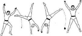 Примечание. Данное упражнение как бы имитирует вращение спицы колеса. Следует обратить внимание на корпус, который должен быть прямым, без прогиба в пояснице. Руки все время прямые, ноги тоже.