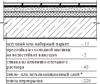 Конструкции полов общественных зданий принимаются по П1-03 к СНиП 2.03.13-88 (рисунки 108–109).