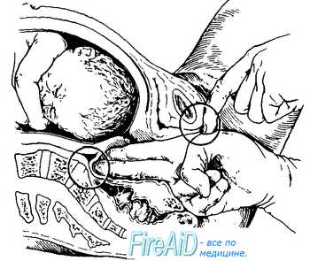 Рис 4.13а. Измерение диагональной конъюгаты.