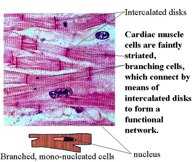 Среди особенностейорганизации кардиомиоцитов (по сравнению со скелетными мышцами) следует отметить следующие: