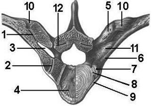 Тела позвонков соединяются посредством межпозвоночных дисков, disci intervertebrales, толщиной от 3-4 до 10-12 мм (рис.10).