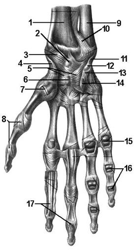 Капсулы свободны и укреплены коллатеральными связками, ligg. collateralia, и с ладонной стороны – ладонными связками, ligg. palmaria.