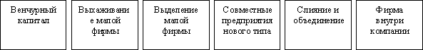 Стремление к росту и диверсификации заставляет крупные предприятия разрабатывать и реализовывать разнообразные венчурные (рисковые) стратегии, подразумевающие создание малых инновационных фирм, большинство из которых терпит неудачу. Но даже те малые фирмы, которые выживают, окупают первоначальные капвложения только через десять и более лет.
