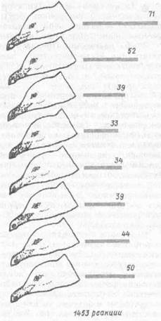 Рис. 2. Серия картонных моделей головы серебристой чайки (по Р. Хайнд-у, 1975):