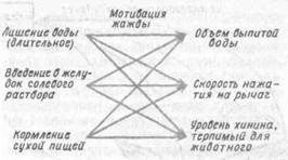 направленное поведение. Предложенная П. К. Анохиным (1932) методика свободного выбора пищи животным оказалась весьма демонстративной, ибо предпочтение животным определенного вида пищи (мясо, молоко, солевой раствор и пр.) свидетельствовало о наличии соответствующей исходной мотивации.
