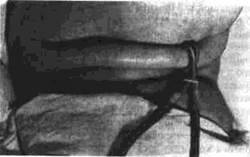Для местной гипотермии можно использовать обычные пузыри для льда, наполненные холодной водой (10-14°С) Их помещают на проволочный каркас, которым покрывают стебель. Для этой же цели можно использовать и стандартную шину Крамера или сконструированный Л Р Балоном аппарат (холодильник) со специальными камерами, поддерживающими нужную температуру длительное время.