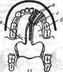 III лап а - после закрытия дефекта в переднем отделе неба (6) и десны (а) сшиты основные и задненебные лоскуты