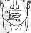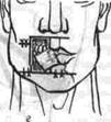 | Рис. 188. Схема хейлопластики при Г-образном дефекте нижней губы и угла рта по А. Ф. Иванову. |