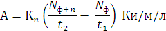 Кn - коефіцієнт приладу, який орієнтовно прийнятий рівним 8 х 10-9 Ки/м/л імп. або 3 х 102 Бк.хв/л імп.