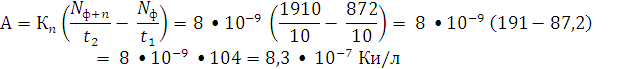 Якщо в результаті вимірів і розрахунку вийде величина, менша чим 2 х 10-7 Ки/л, тобто при різниці показань приладу Nф+n - N