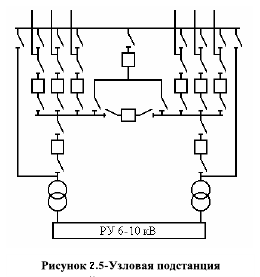 Представляет собой радиально-магистральную сеть, построенную по принципу наименьшей суммарной длины линий электропередачи. Большинство линий двухцепные. Для подстанций ПС 5, ПС4, ПС2, ПС6 принимаем тупиковые подстанции (рис 2.1 б) подстанция ПС3 проходная (рис. 2,2 б). ПС1 узловая (рис.2,5).