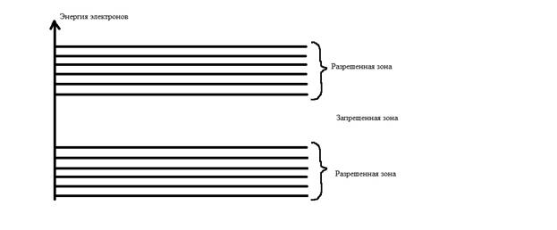 Чем ближе расположены атомы в веществах друг к другу, тем сильнее взаимодействие валентных электронов и влияние на валентные электроны ядер соседних атомов. В результате чего каждый отдельный разрешенный энергетический уровень расщепляется на ряд новых энергетических уровней, энергии которых близки друг к другу. Совокупность уровней, на каждом из которых могут находиться электроны, называют разрешенной зоной. Промежутки между разрешенными зонами носят название запрещенных зон.