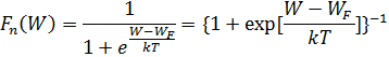 Где Fn(W) – вероятность того, что заданный энергетический уровень W при заданной температуре T будет занят электроном.