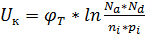 Будем также считать, что переход симметричный, условие которого Nd=Na. Если же Nd≠Na – переход является несимметричным.