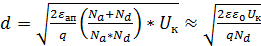 Толщина p-n перехода для равновесного состояния может быть определена: