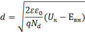 Под действием внешнего поля основные носители заряда будут двигаться к p-n переходу, уменьшая потенциальный барьер и ширину p-n перехода, которая будет определяться: