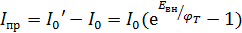 При прямом напряжении на переходе ток диффузии основных носителей заряда I0=Iдиф увеличивается в exp(Евн/φТ) раз за счет снижения потенциального барьера и является функцией приложенного напряжения: