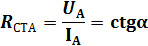 Статическое сопротивление p-n перехода в рабочей точке (А) определяется как отношение напряжения в этой точке к току, соответствующему этому напряжению или равно ctgα – угла образованного прямой, проходящей через начало координат и рабочую точку(А) и осью абсцисс(Х).