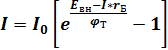 Реальная ветвь(прямая) ВАХ перехода отклоняется от идеальной ВАХ в основном за счёт падения напряжения на сопротивлении базы(rБ), с учётом этого уравнение перехода может быть определено: