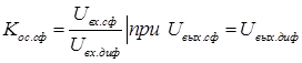 Коэффициент ослабления (подавления) синфазных входных напряжений – это отношение напряжения синфазного сигнала, поданного на оба входа, к дифференциальному входному напряжению, которое обеспечивает на выходе ОУ тот же сигнал, что и в случае синфазного сигнала.