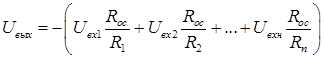 Взаимное влияние входных сигналов Uвх1, Uвх2, …, Uвхn исключено, т.к. инвертирующий вход имеет практически нулевой потенциал.