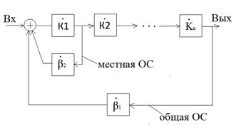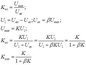 - это ООС, что показывает: коэффициент усиления усилителя, охваченного отрицательной обратной связью, уменьшается в (1+ βК) раз.