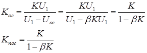 Коэффициент усиления усилителя, охваченного ОС будет: