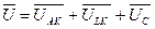де U – загальна напруга кола, В; UАК – напруга на активній частині опору котушки індуктивності, В; ULK– напруга на індуктивній частині опору котушки індуктивності, В; UC – напруга на ємнісному опорі, В.