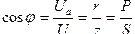 деcosφ – коефіцієнт потужності; Ua – активна напруга, В; U – загальна напруга, В; r – активний опір, Ом; z – повний опір, Ом; P – активна потужність, Вт; S – повна потужність В·А..