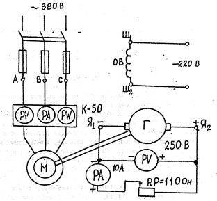 ОБЛАДНАННЯ. 1. Електромашинний агрегат, складений ізтрифазного асинхронного двигуна з короткозамкненим ротором; та генератора постійного струму з незалежним збудженням -
