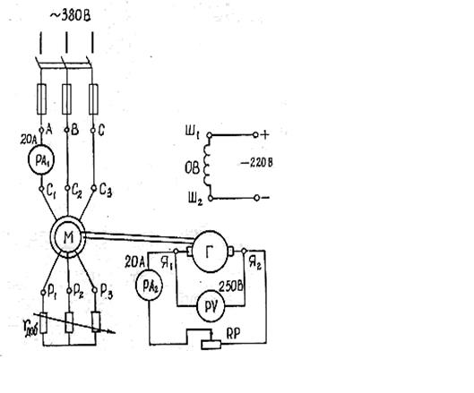 1. Електромашинний агрегат, який складається із асинхронного двигуна з фазним ротором та генератора постійного струму з незалежним збудженням