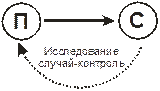 В любом исследовании случай-контроль поиск причин различных следствий происходит в направлении: от следствия к предполагаемой причине.