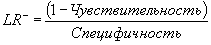 Отношение правдоподобия для отрицательного результата теста (LR- ) – это вероятность отрицательного результата теста для больного человека, деленная на вероятность отрицательного результата теста для здорового человека. Математически LR- рассчитывается следующим образом: