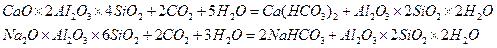 Разложение плагиоклаза под действием воды, содержащей диоксид углерода, может быть представлено следующими схемами