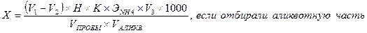 Расчет.Содержание аммонийных ионов (Х) в мг/дм3 находят по формуле: