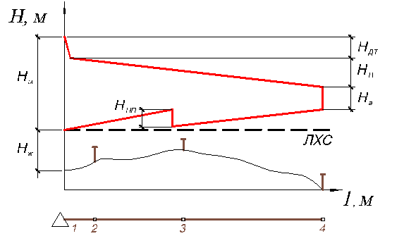 - втрати напору в подавальному та зворотному трубопроводах головної