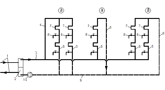 4 – головний стояк при верхньому розведенні системи ГВП;