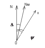 , измеряемый относительно плоскости магнитного меридиана (вертикаль места – ось магнитного диполя Земли).